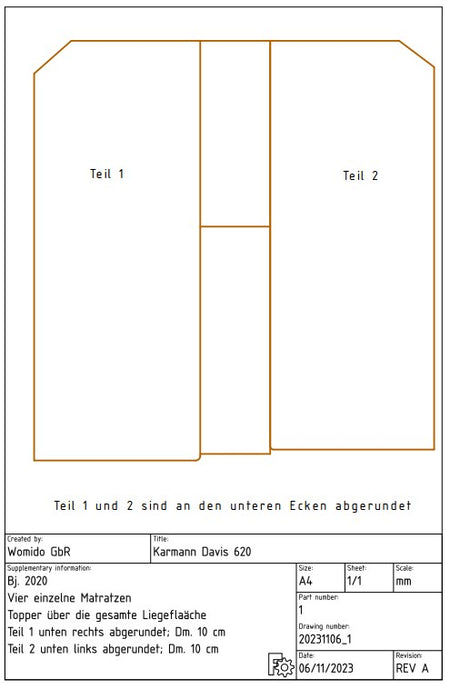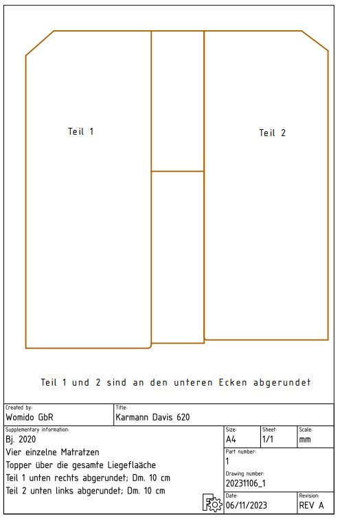 For your 2020 Karmann Davis 620 van, we offer a cold foam mattress with a density of at least 40 kg/m³.