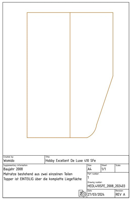 We offer you a suitable mattress protector for your Hobby Excellent Easy 410 SFe from 2006 . You can purchase this in ONE PIECE covering the entire lying surface or, like the original mattresses, consisting of two individual parts that you can pull over the respective mattress for protection without any problems.