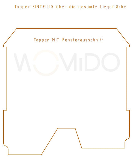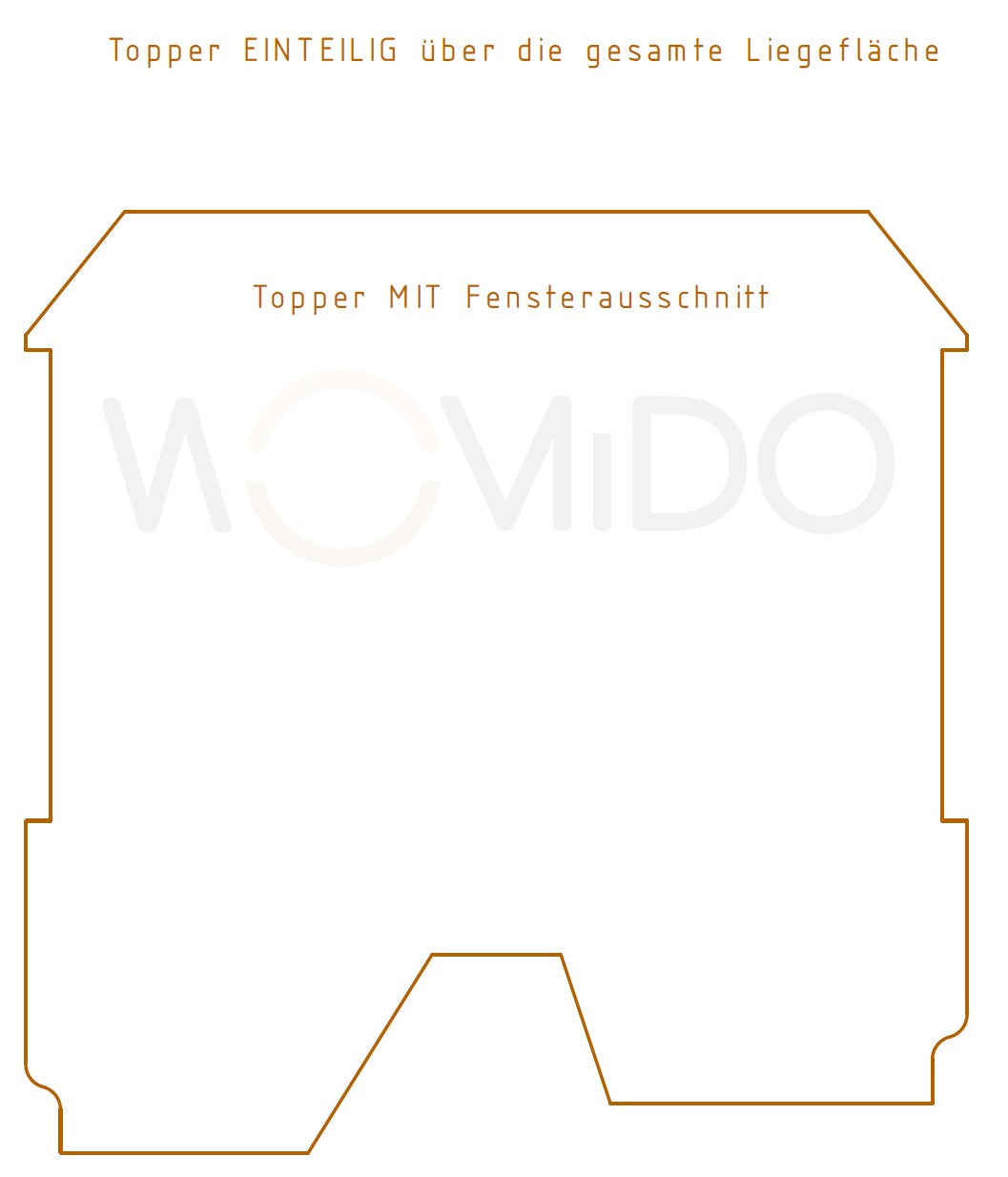 You can purchase this from us in three different degrees of hardness. The topper for your Adria Alpina is ONE PIECE, without folds and extends over the entire lying surface of 134 x 200 x 4 cm