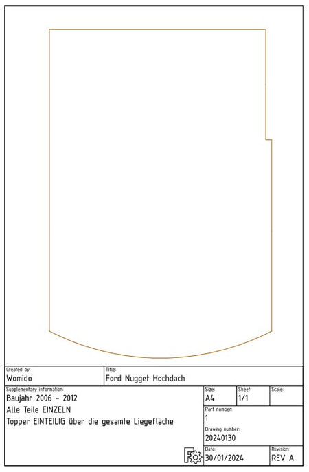 For your Fiat Ducato 244 Adria Mobil D.0.0. 012 Twin from 2005 , we offer you a ONE-PIECE 4 cm high cold foam topper with a density of at least 40 kg/m³.