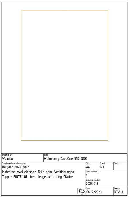 For your Weinsberg CaraOne 550 QDK caravan from 2021/2022 , we offer you a 4 cm high, ONE-PIECE cold foam topper with a density of at least 40 kg/m³.