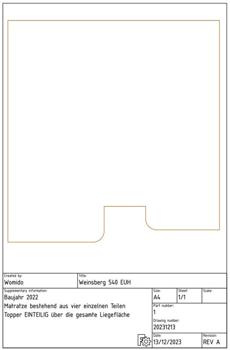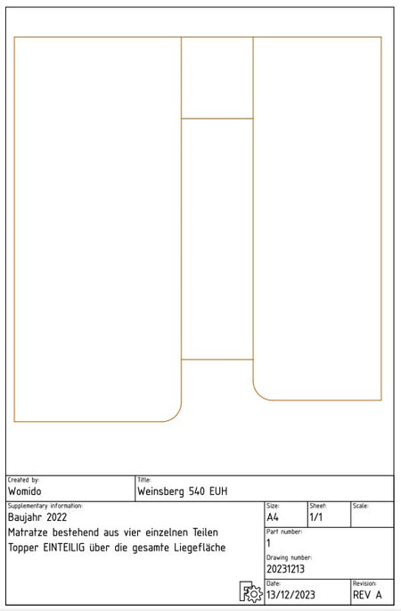 Het laken voor uw Weinsberg CaraOne 540 EUH matras bestaat uit vier afzonderlijke delen. Het laken voor de topper is EEN STUK.