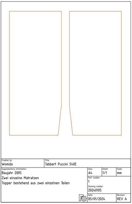 Deze kunt u bij ons kopen in drie verschillende hardheden. De topper voor uw Tabbert Puccini 540 E bestaat uit twee afzonderlijke delen, afhankelijk van de afmetingen van de matrassen.