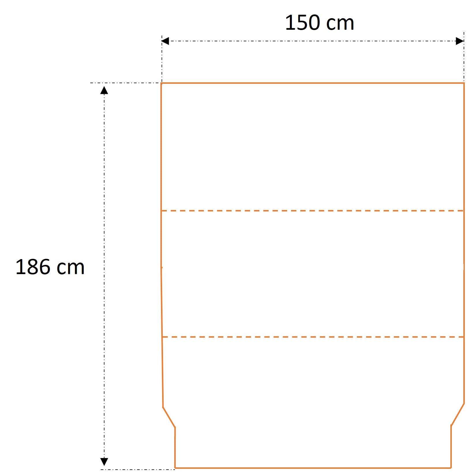 3-teilig 150 x 62 cm = Gesamtmaß: ca. 150 x 186 cm mit Aussparung für Radkästen