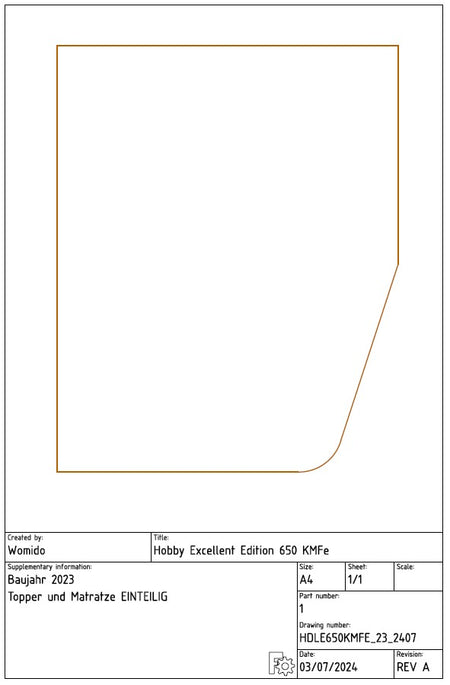 Unser speziell angefertigtes Laken für die Matratze als auch den Topper des Hobby Excellent Edition 650 KMFE ist EINTEILIG.