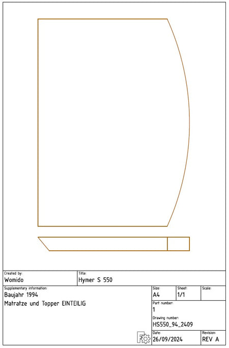 Unser speziell angefertigtes Laken für die Matratze als auch den Topper des Hymer 550 ist EINTEILIG.