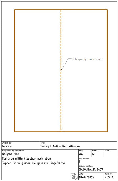 Unser speziell angefertigtes Laken für die Matratze als auch den Topper des Sunlight A70 - Bett Alkove ist EINTEILIG