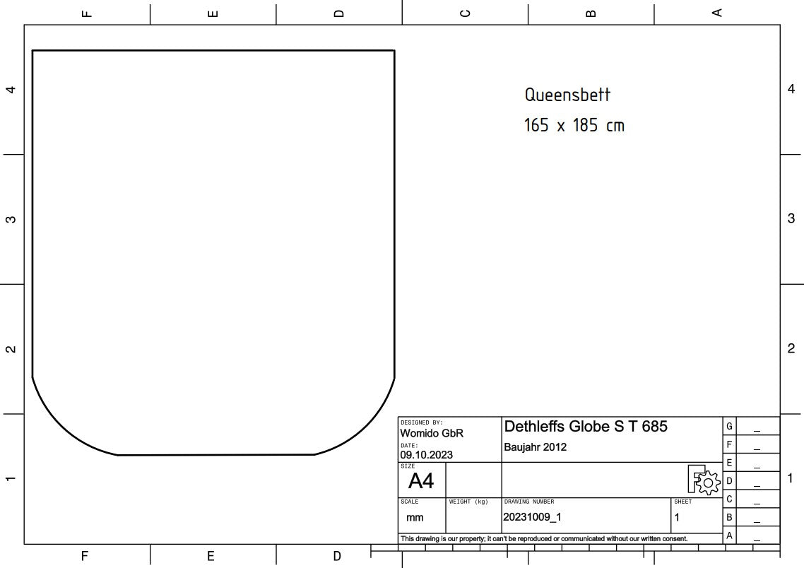 Du bekommst eine Matratze für das Queensbett mit einem Gesamtmaß von 165 x 185 cm.