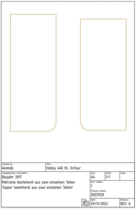 Wir bieten dir für deinen Wohnwagen Hobby ONTOUR 460 HL aus dem Jahr 2017 eine neue Wohnwagen Kaltschaummatratze in der Höhe 8 cm bis 16 cm in drei verschiedenen Härtegraden.