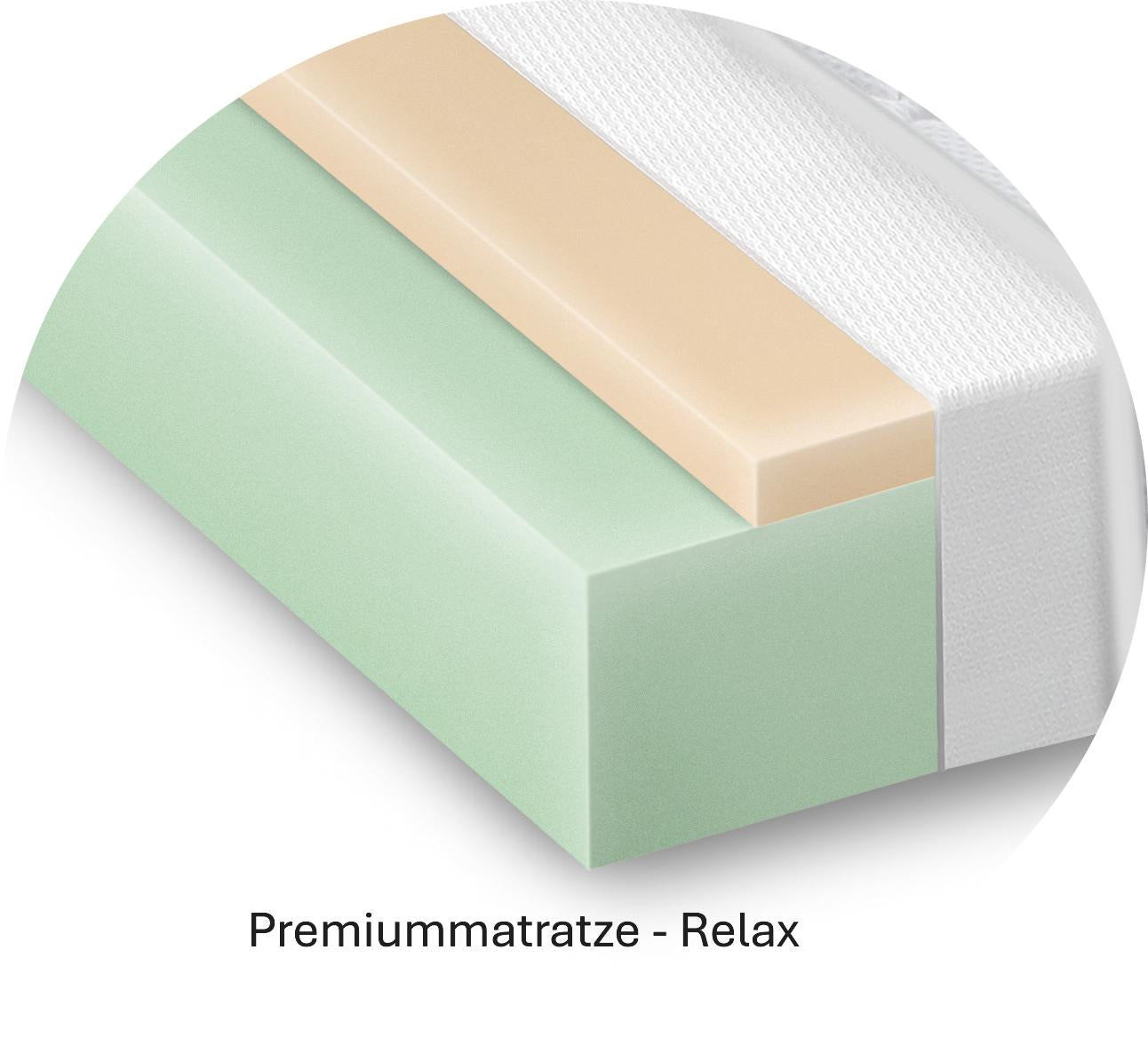 Unsere Premiummatratze - Relax ist der absolte Favorit unserer Kunden. Wir kombinieren hier einen mind. 5 cm Viskoschaum mit einem Kaltschaum, deren Härtegrad du frei wählen kannst.