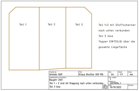Für deinen Kastenwagen Knaus BoxStar 600 MQ aus dem Jahr 2021/ 2022 bieten wir dir bei uns eine Kaltschaummatratze mit einem Raumgewicht von mind. 40 kg/m³ an.