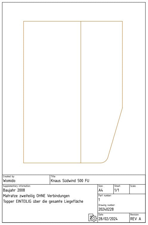 Für Deinen Wohnwagen Knaus Südwind 500 FU mit dem Baujahr 2008 bieten wir Dir den Luxus einer maßgefertigten Kaltschaummatratze an.
