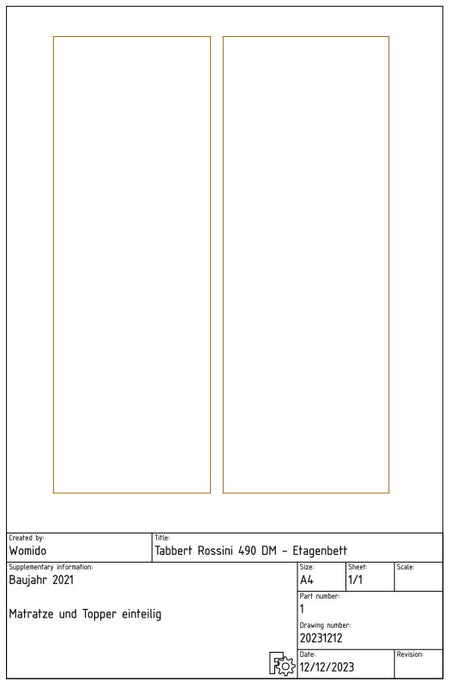 Für das Etagenbett deines Wohnwagens Tabbert Rossini 490 DM aus dem Jahr 2021 bieten wir dir hier eine Kaltschaummatratze mit einem Raumgewicht von mind. 40 kg/m³ an.