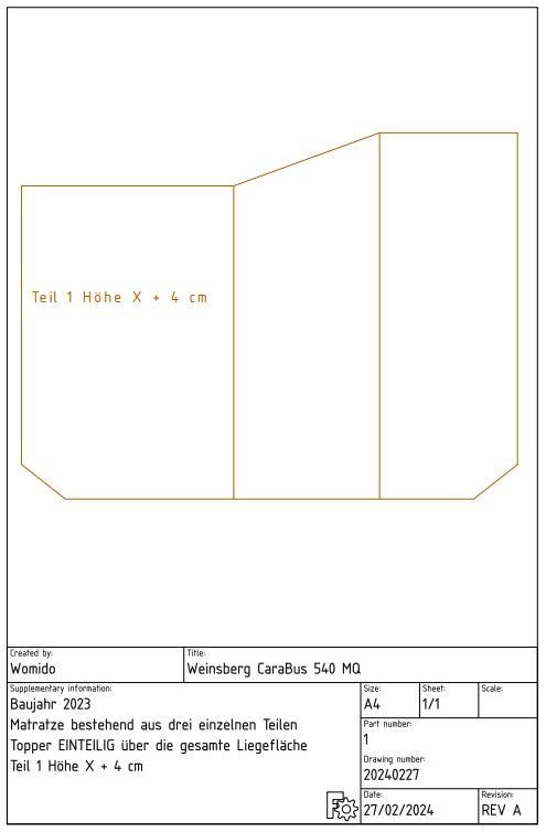 Ebenso kannst du bei uns auch einen einteiligen Kaltschaum Topper oder passgenaues Laken für deinen Weinsberg Cara Bus 540 MQ im Shop erwerben.