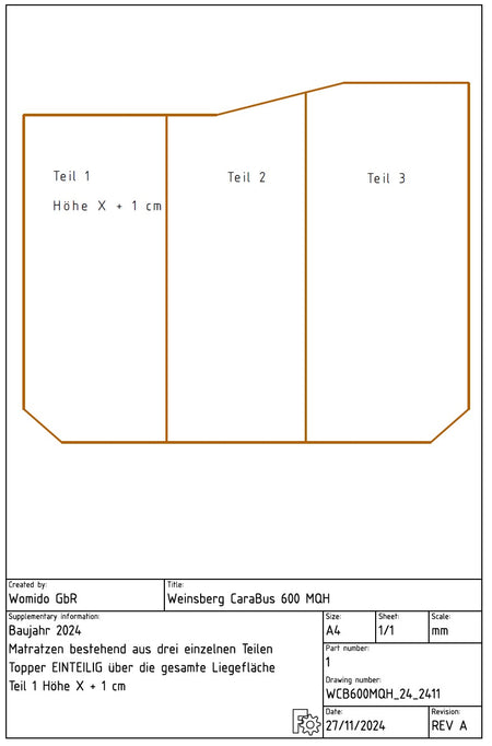 Für deinen Weinsberg CaraBus 600 MQH aus dem Jahr 2024 bieten wir dir hier eine Kaltschaummatratze mit einem Raumgewicht von mind. 40 kg/m³ an.