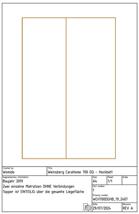 Matratze Weinsberg CaraHome 700 DG - Heckbett
