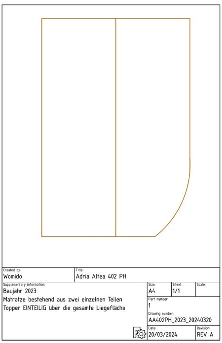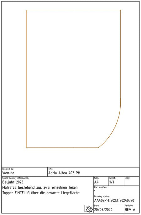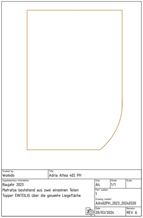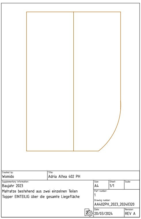 Der Matratzenschoner für die Matratze besteht aus zwei Teilen und für den Topper des Adria Altea 402 PH fertigen wir diesen einteilig an.