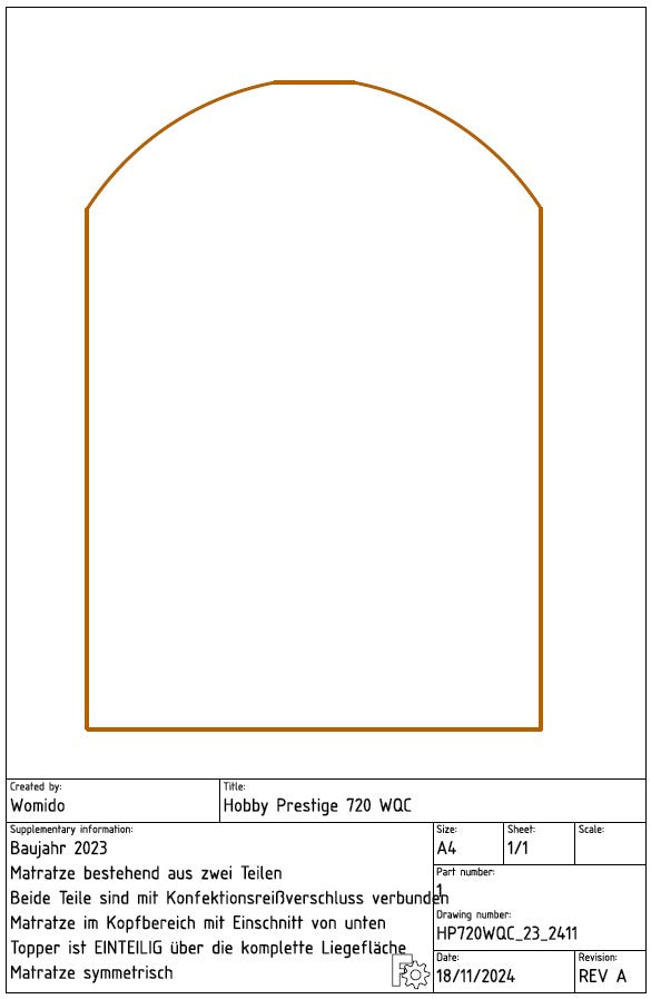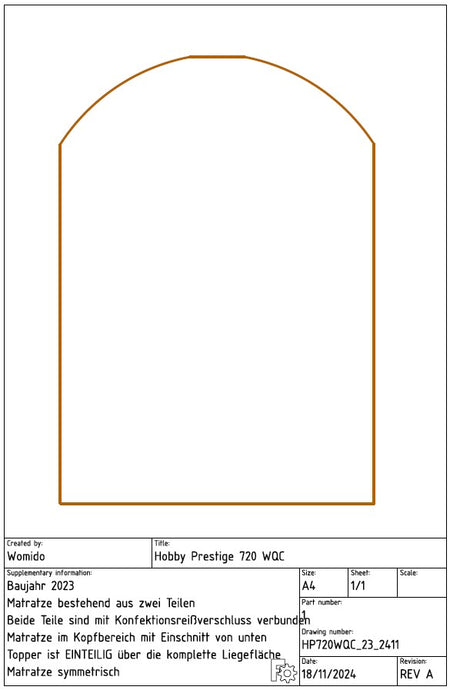 Wir bieten dir für deinen Hobby Prestige 720 WQC aus dem Jahr 2023-2025 einen passenden Matratzenschoner mit Nässeschutz an. Diesen fertigen wir EINTEILIG über die gesamte Liegefläche für dich an.