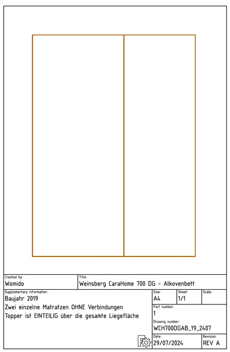 Matratzenschoner Weinsberg CaraHome 700 DG - Alkove