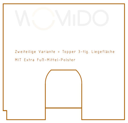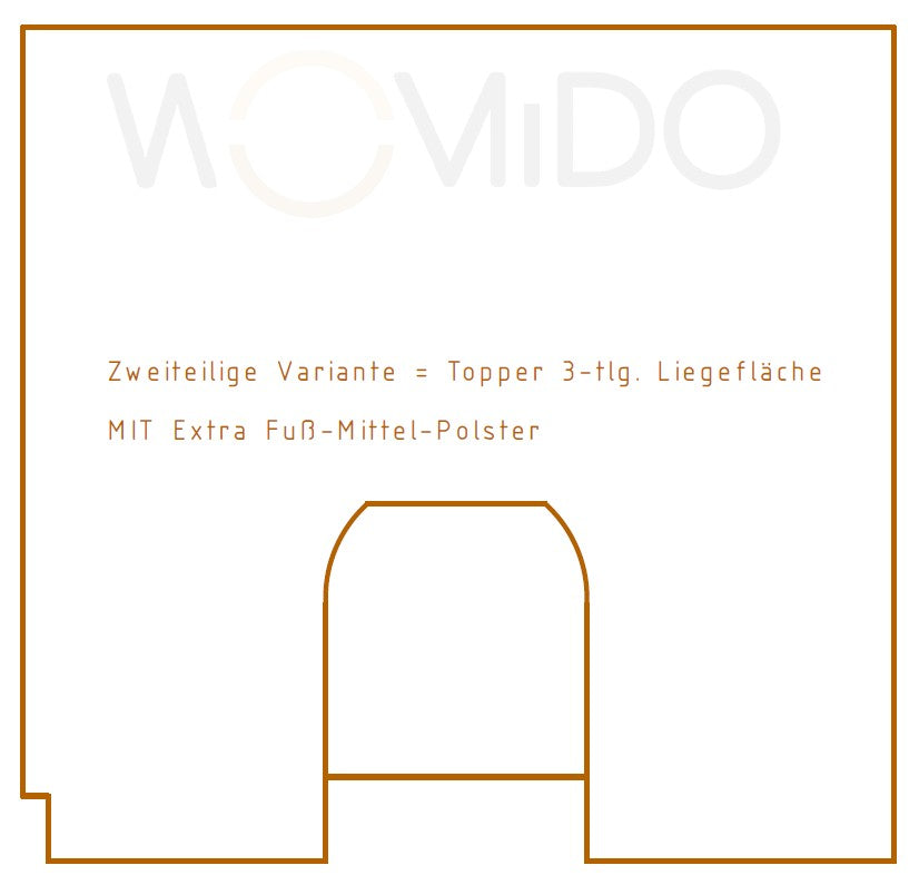 Zweiteilige Variante = Topper über Fahrer-, Mittel- und Beifahrermatratze (=3-tlg. Liegefläche) MIT Extra Polster