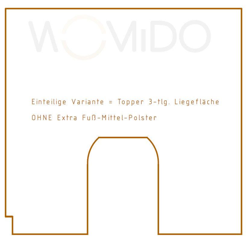 Einteilige Variante = Topper nur über die Fahrer-, Mittel- und Beifahrermatratze (=3-tlg. Liegefläche) OHNE Extra Polster