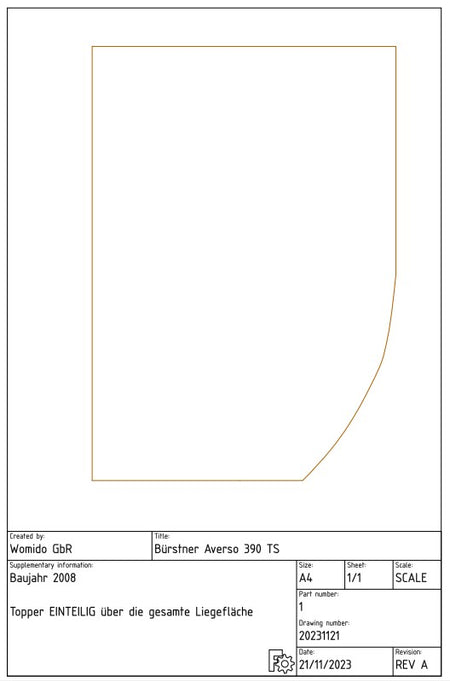 Für deinen Wohnwagen Bürstner Averso 390 TS aus dem Jahr 2008 bieten wir dir hier einen EINTEILIGEN 4 cm hohen Kaltschaumtopper mit einem Raumgewicht von mind. 40 kg/m³ an.