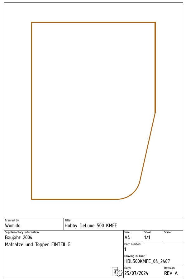 Für deinen Wohnwagen Hobby De Luxe 500 KMFE  aus dem Jahr 2004/2005 bieten wir einen hochwertigen 4 cm hohen Kaltschaumtopper an, der aus einem einzigen Stück gefertigt ist und ein Raumgewicht von mindestens 40 kg/m³ aufweist. Dieser Topper ist in drei verschiedenen Härtegraden erhältlich, um deinen persönlichen Schlafpräferenzen gerecht zu werden. Er erstreckt sich nahtlos über die gesamte Liegefläche von 138 x 198 x 4 cm und ist ohne Klappungen für ein gleichmäßiges Liegeerlebnis konzipiert.