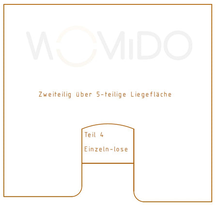 Variante 1 = zweiteilig über die 5-teilige Liegefläche und Polster 4 extra