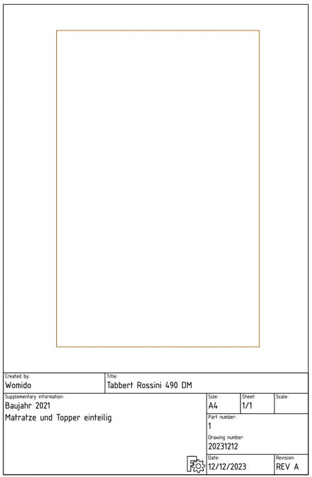 Für deinen Wohnwagen Tabbert Rossini 490 DM aus dem Jahr 2021 bieten wir dir hier einen 4 cm hohen, EINTEILIGEN Kaltschaumtopper mit einem Raumgewicht von mind. 40 kg/m³ an.